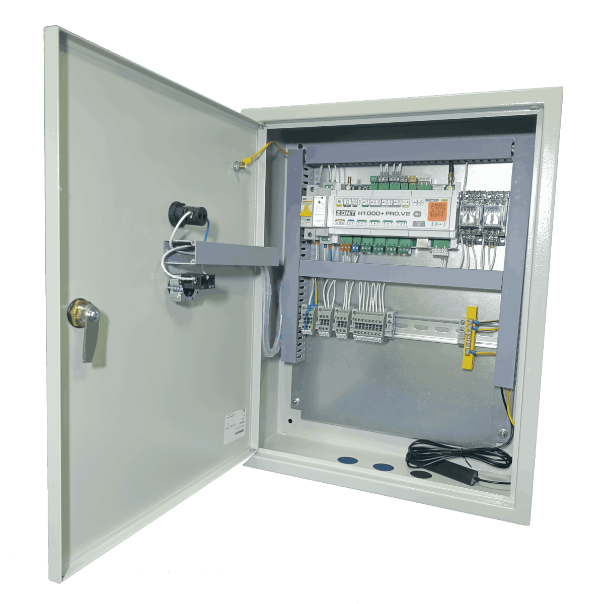 Шкаф удалённого управления котлами, мониторинга котельной, диспетчеризации GSM и сигнализации на базе контроллеров Zont h1000+ pro.v2, Zont h2000+ pro.v2, MyHeat PRO предназначен для управления и сигнализации котельной, на основании сведений, поступающих от контрольно-измерительных приборов и датчиков КИПиА котельной, с отображением состояния и работы оборудования, а также его технологических аварий.